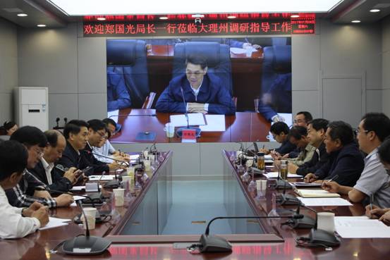 郑国光局长一行听取了大理州地震局张启明局长防震减灾工作汇报,张启明局长从大理州基本情况、地震工作简要情况、存在的困难及请求解决的问题、下一步工作四个方面汇报了大理州的防震减灾工作。