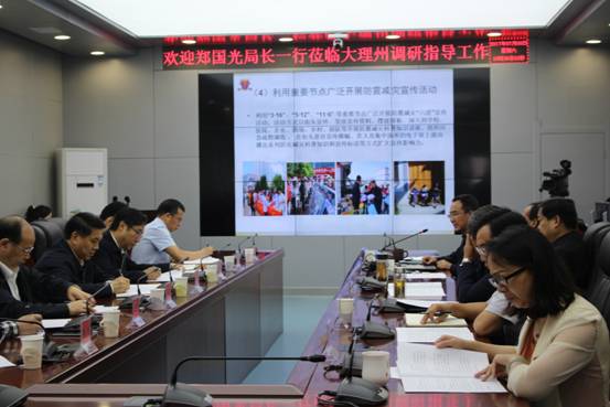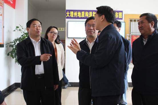 7月8日,中国地震局党组书记、局长郑国光一行到大理州地震局调研指导防震减灾工作。云南省地震局局长皇甫岗、州委副书记、州长杨健、副州长邹子卿陪同调研。